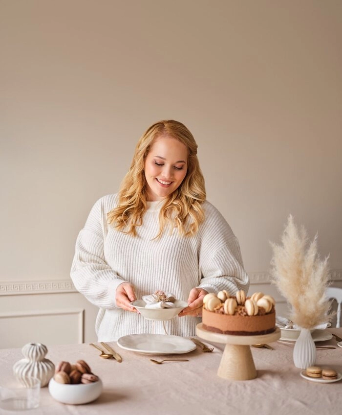 Za imenom Leaneen stojim jaz – Nina, ustvarjalka, ki z veliko strasti do kulinarike in estetike navdušujem svojo skupnost. Po izobrazbi sem diplomirana etnologinja in kulturna antropologinja, svojo pot pa sem našla v ustvarjanju receptov, predvsem sladic, in deljenju le-teh na svojem blogu. Moji recepti so znani po preprostosti in hkrati prefinjenosti, s poudarkom na kakovostnih sestavinah in estetski predstavitvi.