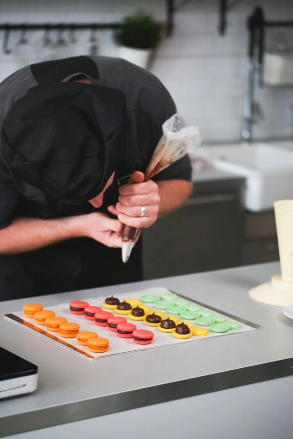 Čoko nasvet: Makrone napolnite s čokoladnim ganachem iz BAM čokolade, s kremo iz BAM prelivov ali BAM vanilijevo kremo.