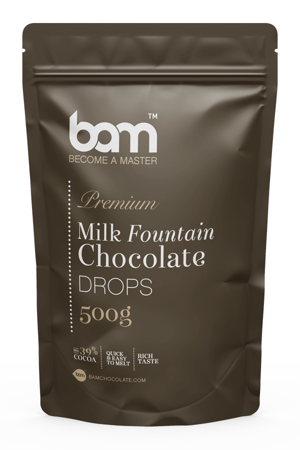 BAM mlečna čokolada za fontano je vrhunska čokolada z vsaj 39,3 % kakava in več kakavovega masla. Ravno zaradi tega, ker vsebuje več kakavovega masla kot klasične čokolade, je idealna za čokoladne fontane in fondije, saj je z njo še lažje obliti sadje in druge dobrote. Očaral vas bo njen kremno-karamelen okus mlečne čokolade. Je v obliki čokoladnih kapljic, ki omogočajo hitro in preprosto topljenje. Čokolada je BREZ glutena.