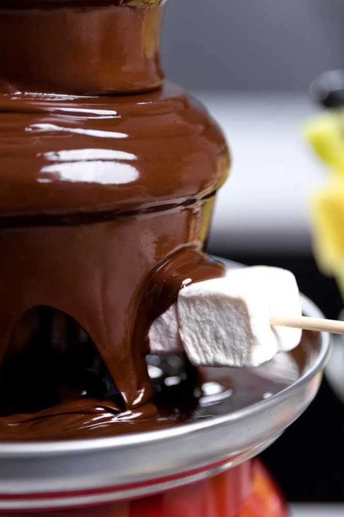 Paket Čokoladna fontana vsebuje 2 paketa izvrstne BAM mlečne čokolade za fontano in mini čokoladno fontano. Mini čokoladno fontano odlikuje preprosta uporaba, enostavno čiščenje, tiho delovanje motorja in velikost. BAM mlečni čokoladi za fontano pa je dodanega veeeeliko kakavovega masla, kar pomeni, da boste z njimi dobili gladek in svilnat slap čokolade pod katerega lahko postavite sadje, piškote ali druge slaščice po želji. Izdelki so BREZ GLUTENA.