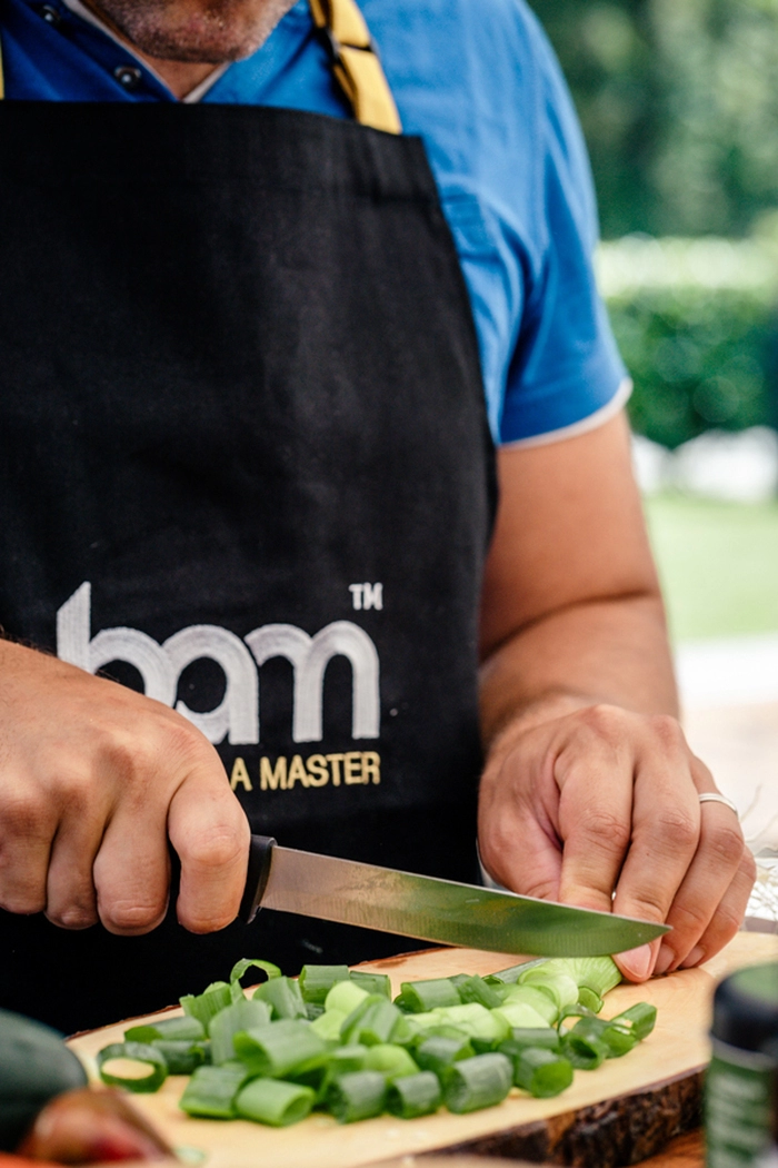 V paketu čakata predpasnik in kuhinjska rokavica za peko. BAM predpasnik lahko z modernim izgledom in logotipom BAM Become A Master, postane vaš novi najljubši kuhinjski pripomoček. Svoj moderni izgled odraža z elegantno črno barvo, kateri se pridružijo še trakovi v baročni zlati barvi, ki vas okoli pasa in vratu poljubno objamejo. V paket se povabi še kuhinjska rokavica za peko, katero smo okrasili z izvezenim BAM logotipom. Rokavica ščiti pred visokimi temparaturami, predpasnik pa zaščiti vaša oblačila med naslednjim ustvarjanjem v kuhinji.