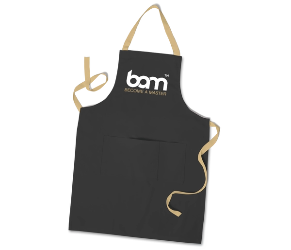 BAM predpasnik in kuhinjsko rokavico za peko smo spravili v bombažno nakupovalno vrečko in tako pripravili paket, ki bo razveselil vsakega slaščičarskega mojstra ali mojstrico. BAM predpasnik z modernim izgledom in logotipom BAM Become A Master, postane najljubši kuhinjski pripomoček. Svoj moderni izgled odraža z elegantno črno barvo, kateri se pridružijo še trakovi v baročni zlati barvi, ki vas lahko okoli pasa in vratu poljubno objamejo. V paket se povabi še toplotno odporna kuhinjska rokavica za peko, na katero smo prav tako dodali izvezen logotip BAM. Predpasnik in rokavica sta sestavljena iz 100% bombaža. Paket je primeren tako za ženske kot za moške slaščičarske ustvarjalce.