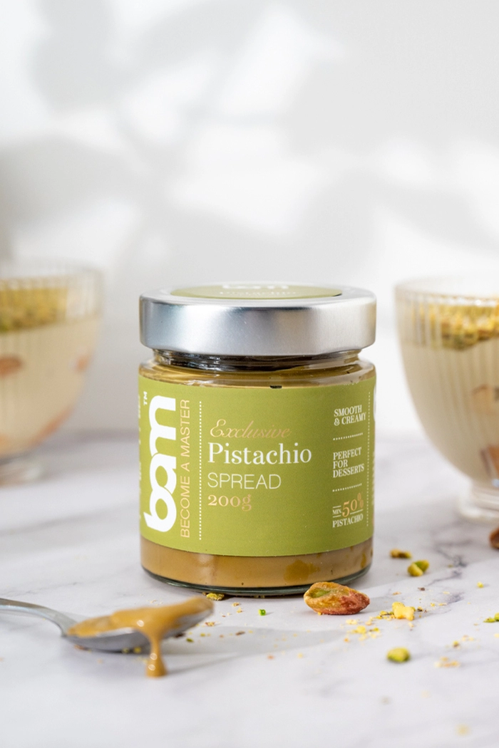 Klasični BAM pistacijin namaz z vsaj 50 % praženih pistacij navdušuje z bogatim okusom in nežno mazljivostjo, zaradi česar je popoln za vsakodnevno uporabo – na kruhu, palačinkah, v pecivih ali kar na žlico. Za vse, ki prisegajo na hranilno vrednost in energijo, je v paketu tudi hrustljavi pistacijin proteinski namaz, obogaten z beljakovinami, ki s svojo teksturo in okusom razveseljuje aktivne posameznike in sladkosnede. Za pravo sladko pregreho poskrbi BAM pistacijin namaz z belo čokolado, ki očara z nežno, a bogato kombinacijo pistacije in čokolade ter je kot nalašč za trendovske sladice. Piko na i doda 100 % pistacijina pasta – vrhunska surovina za vse, ki želite ustvarjati brez kompromisov in s polnim okusom prave pistacije.