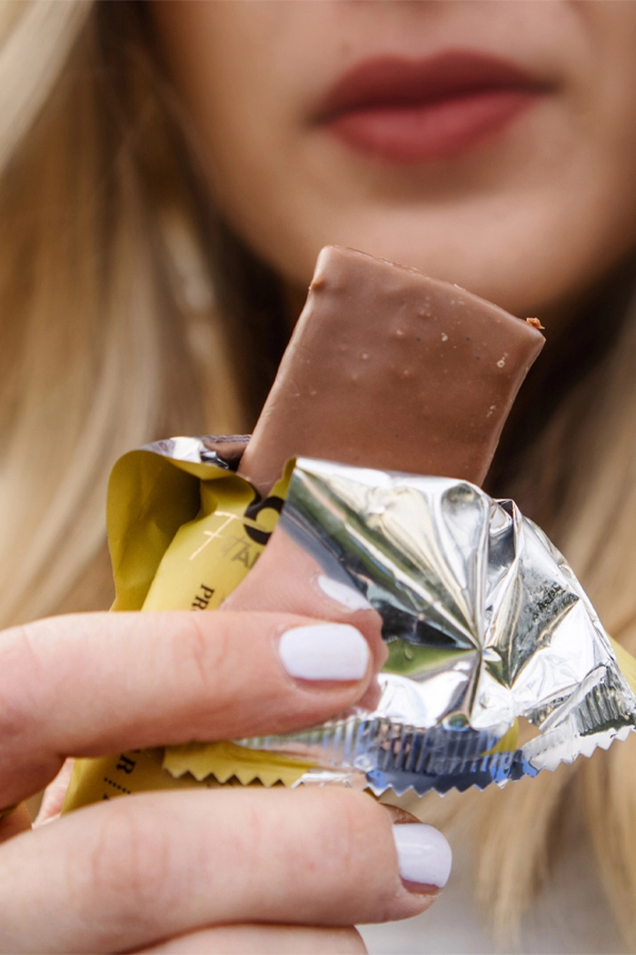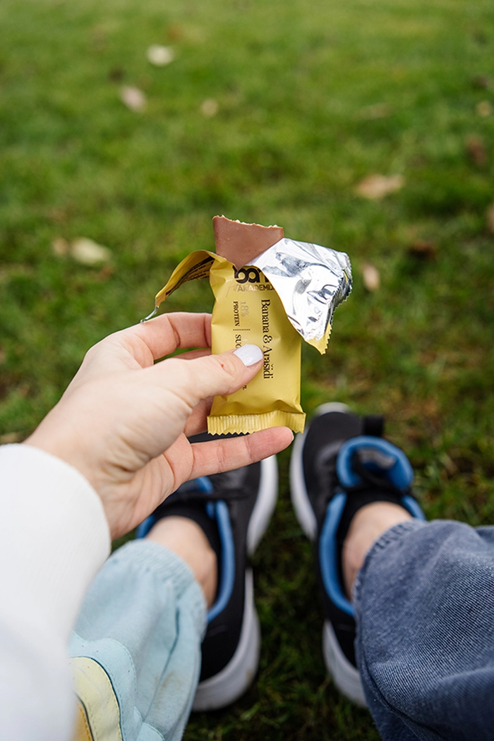 BAM proteinska ploščica z okusom banane in arašidov je popolna izbira za hranilno energijo na poti.