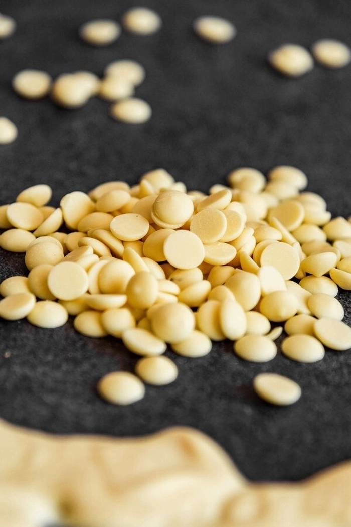Sladkor, kakavovo maslo, polnomastno mleko v prahu, emulgator: sojin lecitin, aroma vanilije.