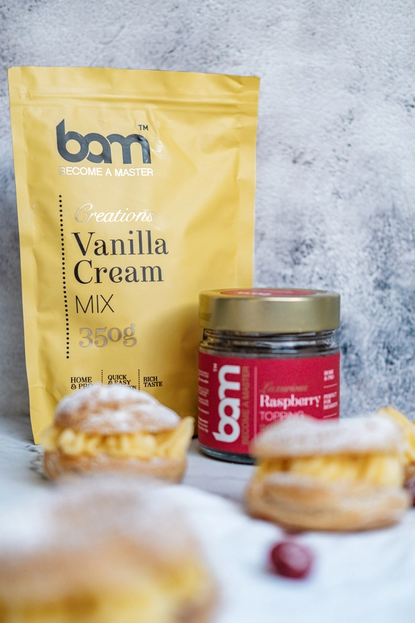 Blagovna znamka BAM by Mojačokolada.si je linija vrhunskih izdelkov za peko in pripravo slaščic. BAM izdelki so namejeni za pripravo vrhunskih slaščic in ostalih jedi, odličnega videza in izjemnega okusa, tudi doma. Želite bogat okus in hitro ter enostavno pripravo vaše vanilijeve sladice? Za vas smo pripravili odlično mešanico za pripravo vanilijeve kreme.