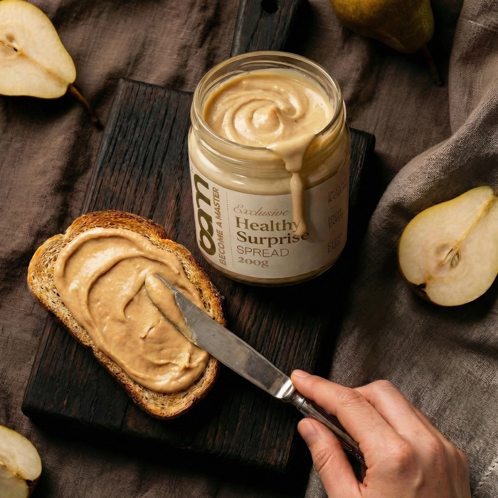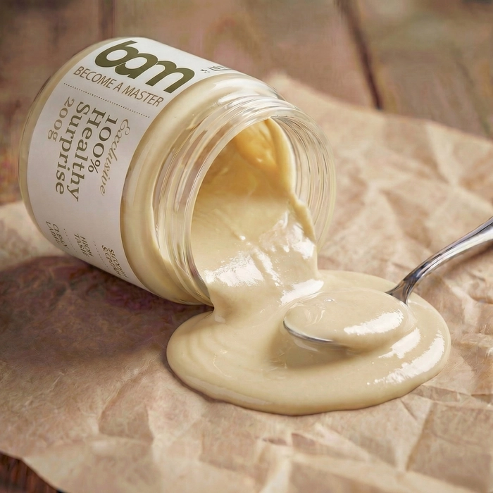 Tokrat smo skrili enega izmed tistih BAM artiklov, brez katerega si aktivnega dneva skoraj ne moremo predstavljati. Ta izdelek je prava izbira za vse, ki obožujete kremne teksture, polne naravnih beljakovin in zdravih maščob, ki ti dajo zagon takrat, ko ga najbolj potrebuješ. Naše zdravo darilo presenečenja je nepogrešljiv spremljevalec pri pripravi fit obrokov. Odlično se odreže kot bogat dodatek v jutranji ovseni kaši, kot energijski namaz na polnozrnatem toastu ali pa kot ključna sestavina v tvojih domačih beljakovinskih ploščicah, v jedeh tujih kuhinj, odličen pa je tudi na žlico. Svojo puhasto teksturo in značilen okus pa posodi tudi fit sladicam, kjer se odlično poveže s sadnimi prelivi presenečenja ali plastjo temne čokolade. Že veš, katero naravno hranilno poslastico smo skrili v paketek presenečenja?