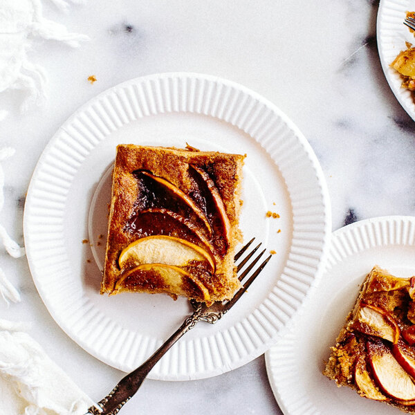 Enostaven recept za jabolčno pecivo postreže s sladico, ki bo mehka in sočna s sočnimi drobtinami, ki se kar lepijo na vilice. V vsakem grižljaju ga spremljajo sočna jabolka. Enostaven recept za jabolčno pecivo ustvari rahko navadno sladico, prelito z masleno glazuro iz rjavega sladkorja.