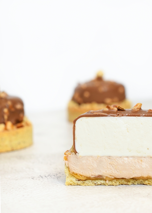 V pitah se prepletajo različni okusi in teksture, ki ustvarijo eno božansko celoto. Sestavljene so iz lešnikovega krhkega testa, lešnikovega pralineja, čokoladno-lešnikove kreme in lahkega vaniljevega moussa, ki je oblečen v hrustljavo čokoladno skorjico. Pripravo pit si razdelimo na dva dneva, da bo krhko testo imelo res dovolj časa za počitek.