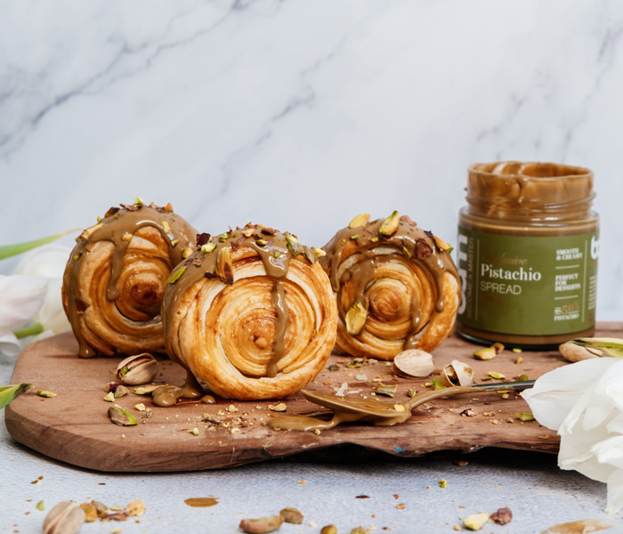 @bamchocolate0 Pistachio pastry combine the crispy texture of puff pastry with the rich flavour of BAM Pistachio Spread. ?✨ The preparation is simple and BAM Pistachio Spread reigns supreme. This recipe is the perfect choice for anyone looking for a unique sweet treat that is quick to prepare and sure to impress in both taste and appearance. Ingredients: 2 puff pastry rolls 1 egg 30g butter BAM Pistachio spread Fistful of pistacchios Preparation instructions: Spread a layer of puff pastry thinly with butter and cover it with another layer. Roll the pastry lightly and place in a cold place for 5 minutes. Cut the dough into even strips with a knife and shape into logs. Fold each end of the semolina into the bottom. Squeeze them well and brush each one with the beaten egg. Use the moulds to hold their shape. Bake the dough at 200 degrees for 25-30 minutes. When they have cooled a little, remove the moulds and fill the snails with the best BAM Pistachio Spread. Spoon a spoonful over the top and sprinkle the crumbled pistachios on top for decoration. #pistachio #bamchocolate #pistachiobakery #pistachios #bam #bampistachio ♬ original sound - BAM (Become A Master)