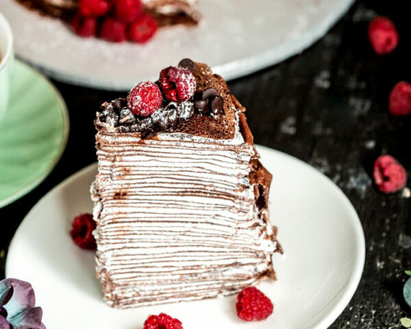 Ta impresivna torta s palačinkami in okusom tiramisuja vsebuje 25 kot papir tankih palačink, 24 plasti puhastega in okusa polnega nadeva okusa tiramisuja, posipov s kakavom v prahu, torti pa piko na doda še stepena sladka smetana.