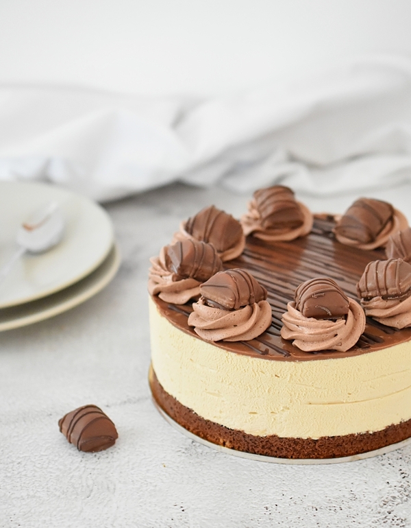 Le kdo ne mara teh slavnih čokoladic s slastnim lešnikovim polnilom? Ali pa, ste si kdaj predstavljali, da boste lahko jedli torto s skoraj identičnim okusom lešnikove kreme Kinder? Velikokrat slišimo, da lešnikov namaz ni nič posebnega, dokler ga prvič ne poskusite. No, zatem se izkaže, da je okus BAM lešnikovega namaza res skoraj enak kot polnilo v Kinder Bueno čokoladicah. Slaščičarska umetnica Urška Jerman, ga je stlačila v kremo in nastala je krasna, nič presladka torta, ki bo navdušila vse sladokusce.